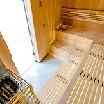Lux - Bath With A Baltic View Rewal - Spa Access设有大海景的露台。 这套公寓配有土耳其浴室,热浴盆 和桑拿,设有健身中心。